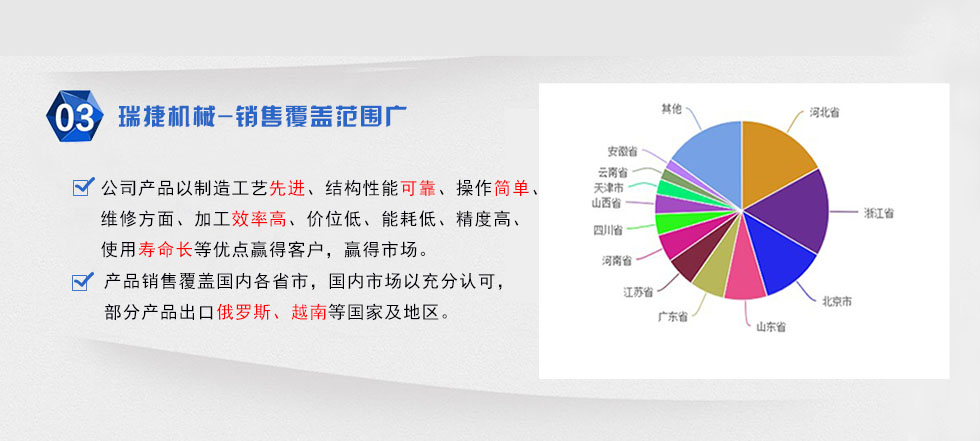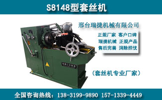邢台市瑞捷机械制造有限公司专业生产圆钢套丝机,钢管套丝机两大系列,其特点主要展现为机头的优化改进,大幅度提高了加工螺纹丝头的精确度和工作效率,有效解决了本行业在加工丝扣上端部易扭转变形(丝扣加易扩口)、配件损耗高、加工效率低的技术难题。